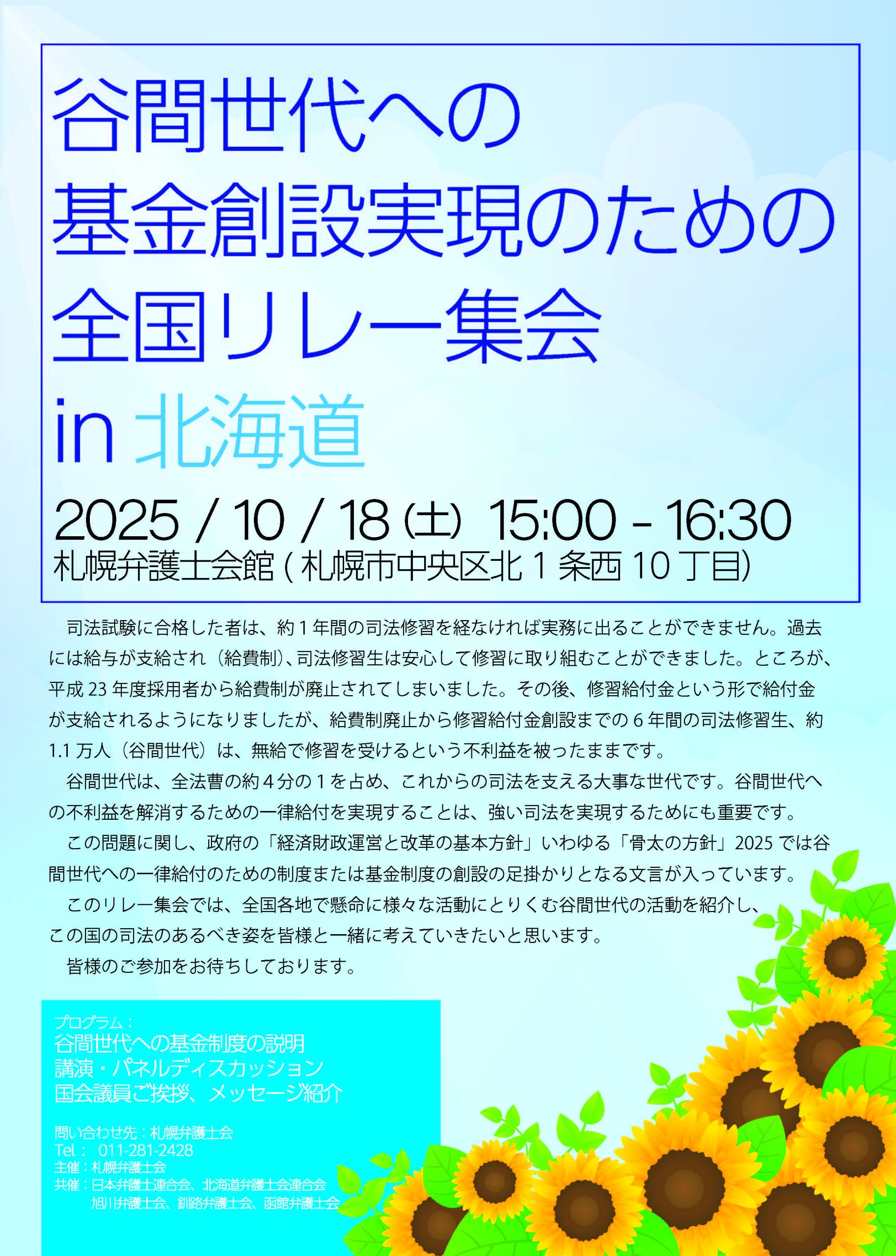 10/18(土)「谷間世代への基金創設実現のための全国リレー集会in北海道」