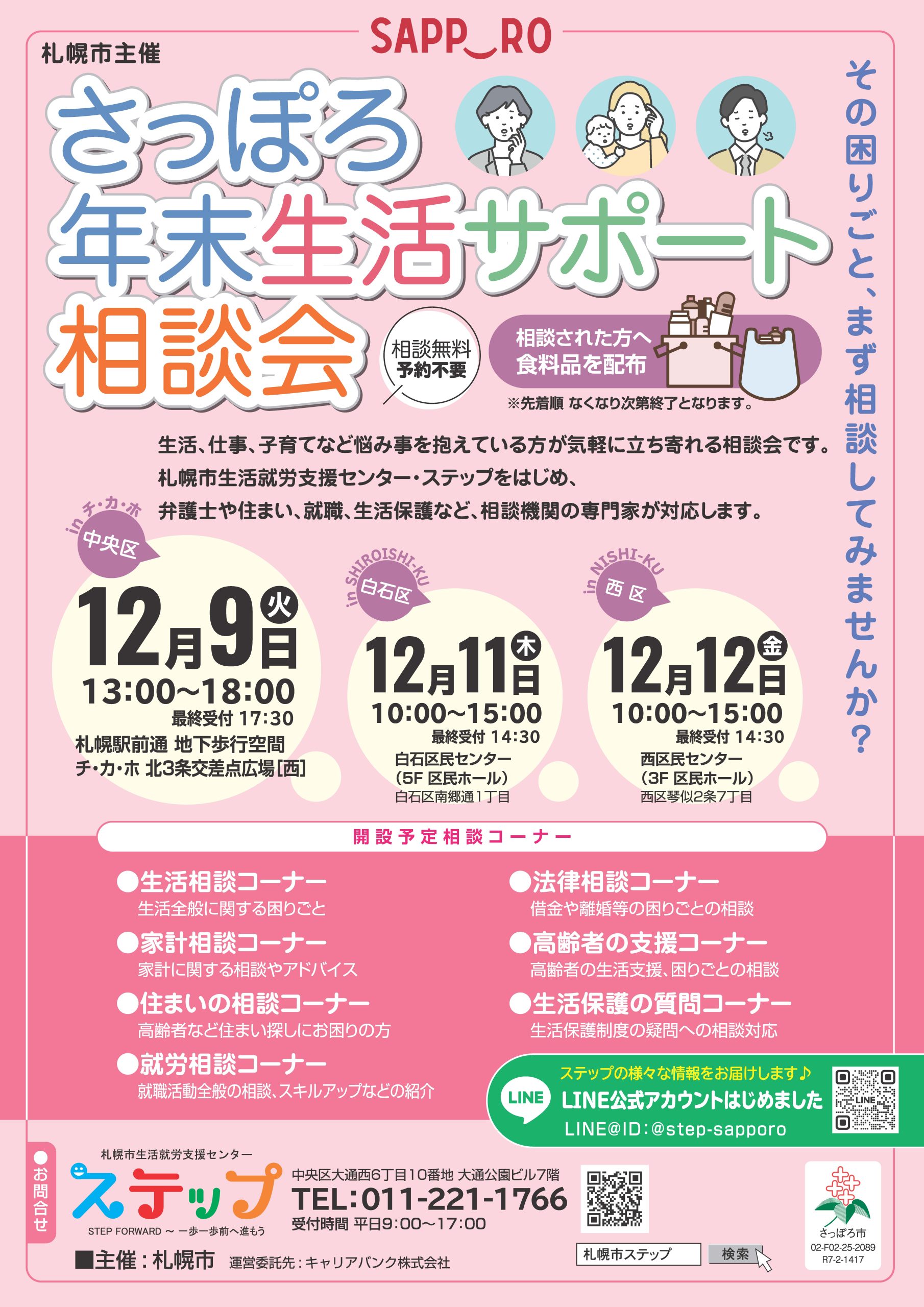 12/9(火),11日(木),12日(金) さっぽろ年末生活サポート相談会